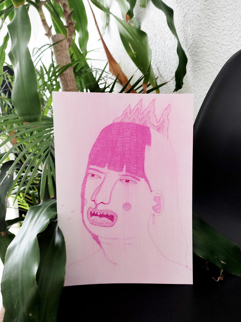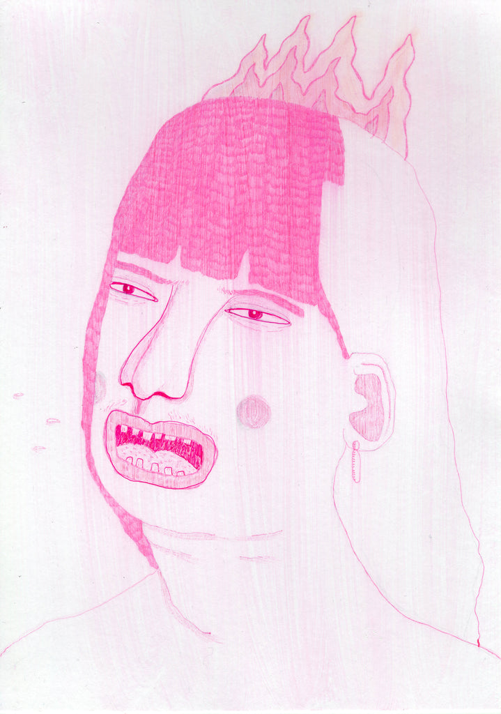 Pilot, bolígrafo, lápiz de grafito y acrílico sobre papel.