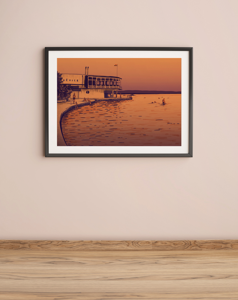 Paisaje realizado en la visita de la artista a la playa Bacvice en Split, Croacia. Un día nublado que transmitió a Parrello una sensación de decadencia y melancolía. Una imagen atrayente, y sugerente, difícil no capturar el momento.